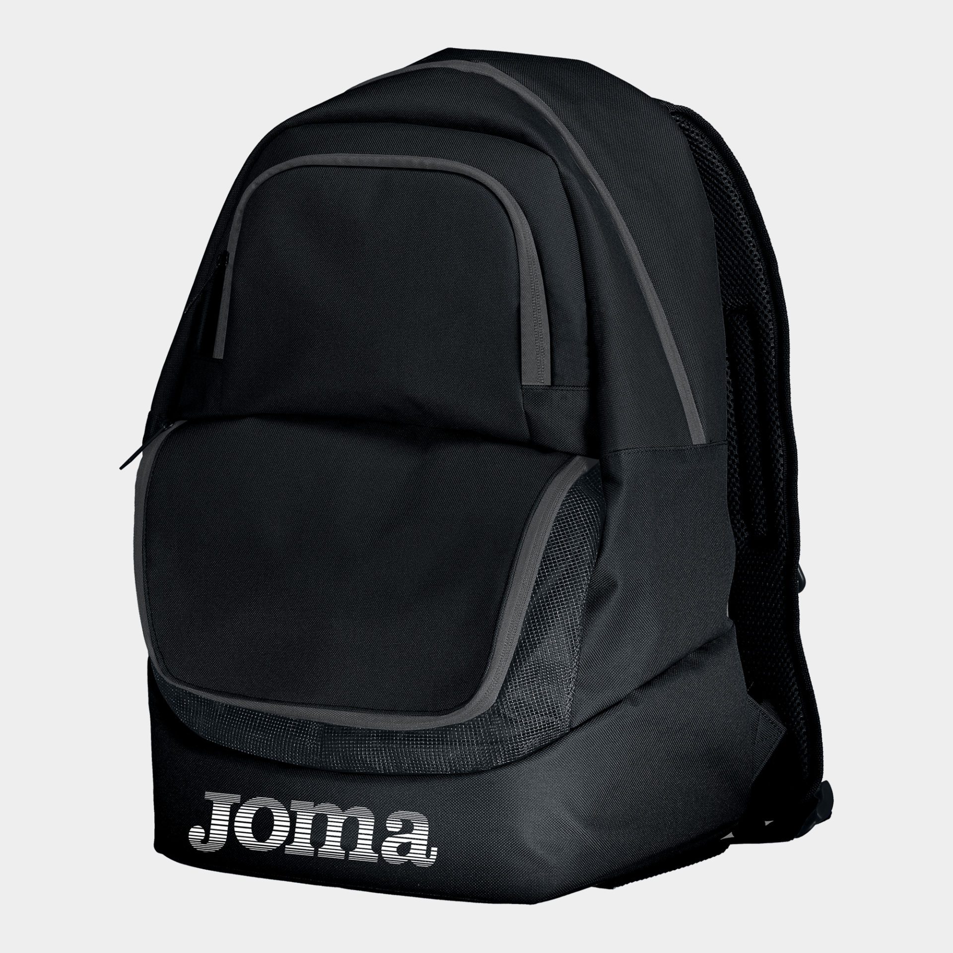 Backpack with reinforced back. Front pocket for ball. Screen printed logo.
