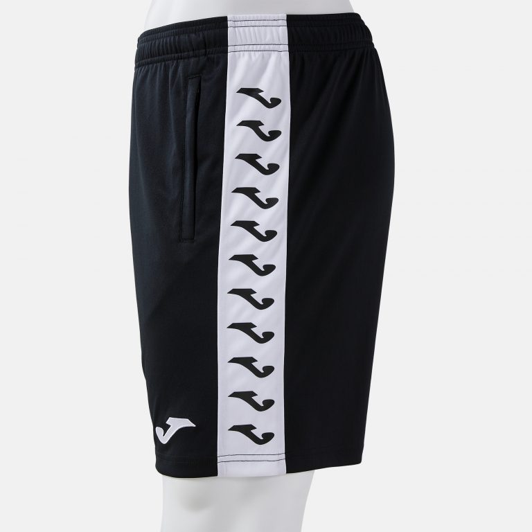 Joma Heroic Bermuda Pocket Shorts developed to offer comfort and performance during sports activities. The shorts feature a white stripe down each side.